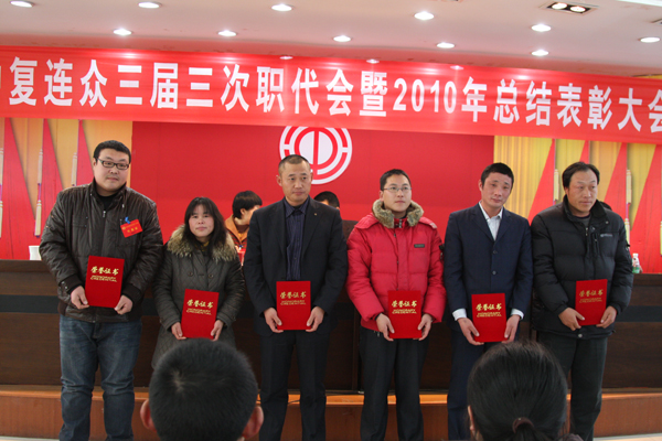 ?;⑥o舊歲,吉兔送福來。1月26日,中復(fù)連眾迎來兩件喜事,第三屆三次職工代表大會和2010年度總結(jié)表彰大會同時(shí)召開。來自各條戰(zhàn)線的職工代表、行管人員和受表彰人員歡聚一堂,回顧總結(jié)企業(yè)一年來的工作成績,振奮精神,堅(jiān)定信念,喜迎2011。